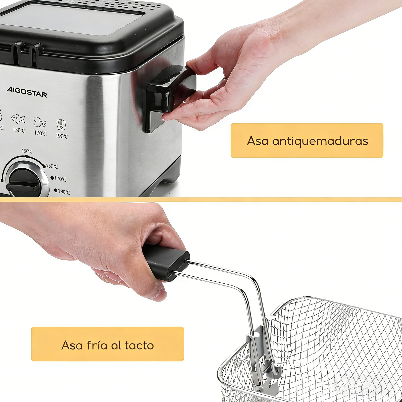La freidora AIGOSTAR es una maravilla para mi cocina, el acero inoxidable 304 se siente de excelente calidad y segura para cocinar.